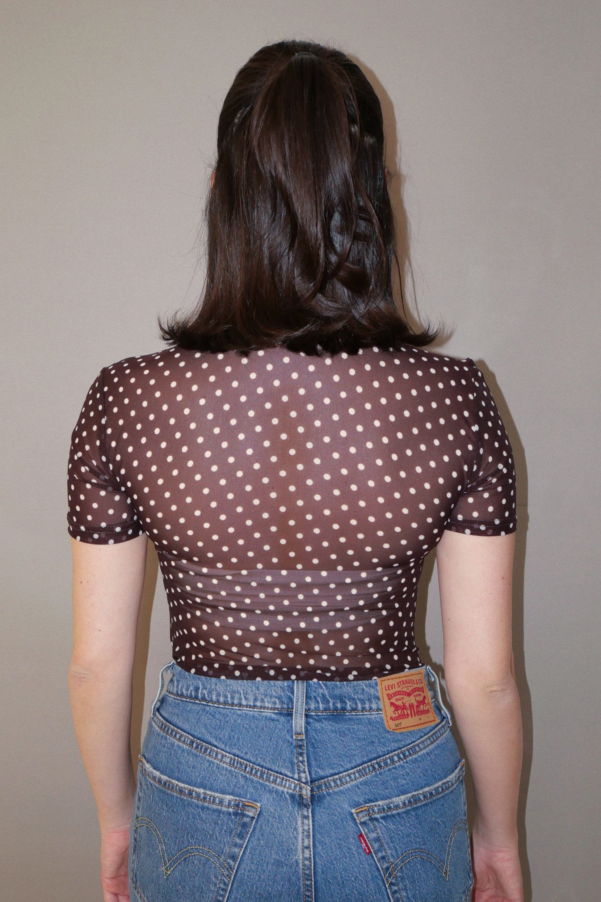 Brown Mesh Polka Dot Bodysuit